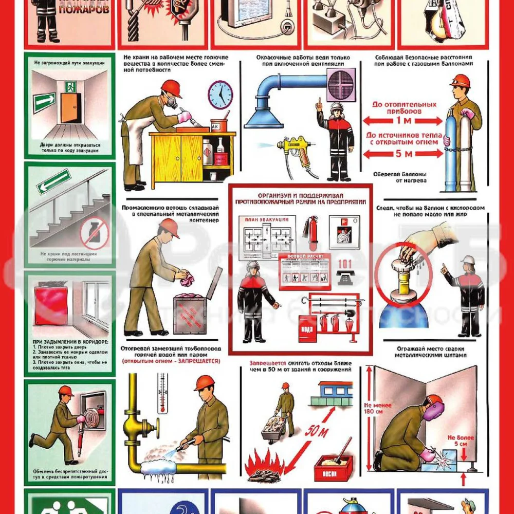 Mahsulot turi: Yong‘inga qarshi xavfsizlik bo‘yicha plakat Hajmi: A3 (297×420 mm), A2 (420×594 mm) Material: Laminatsiyalangan karton yoki