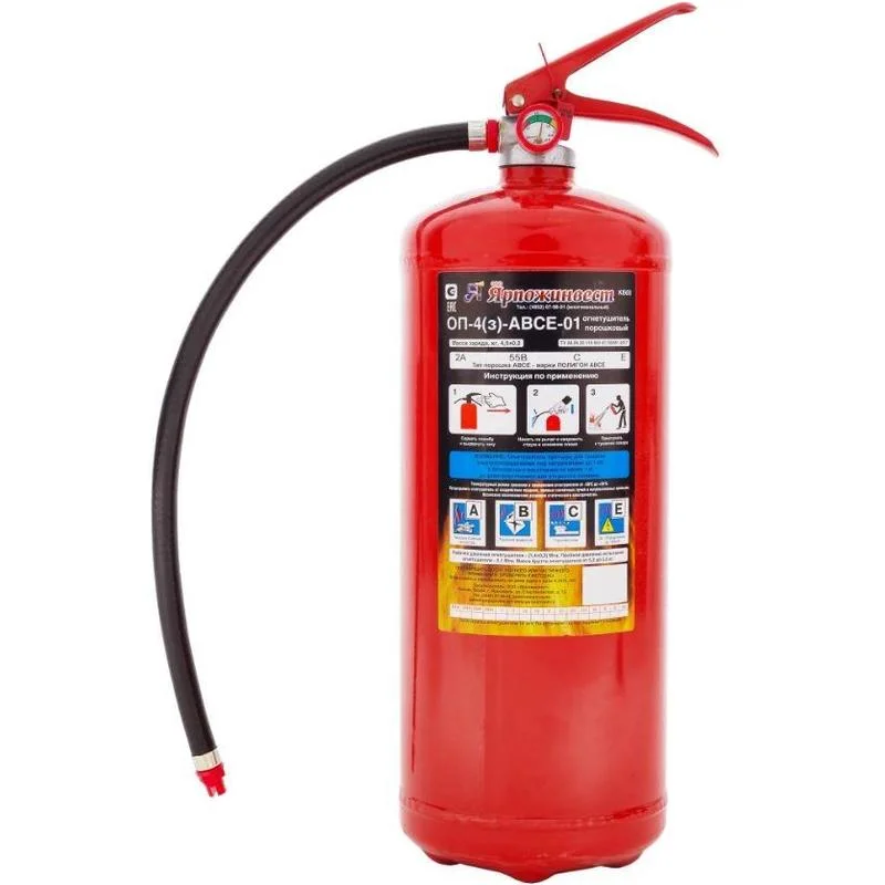 Model: OP-4-Ш Turi: Kukunli yong‘in o‘chirgich Hajmi: 4 kg Ishlash bosimi: ~1.4 MPa O‘chirish klasslari: A, B, C (qattiq, suyuq va gazli