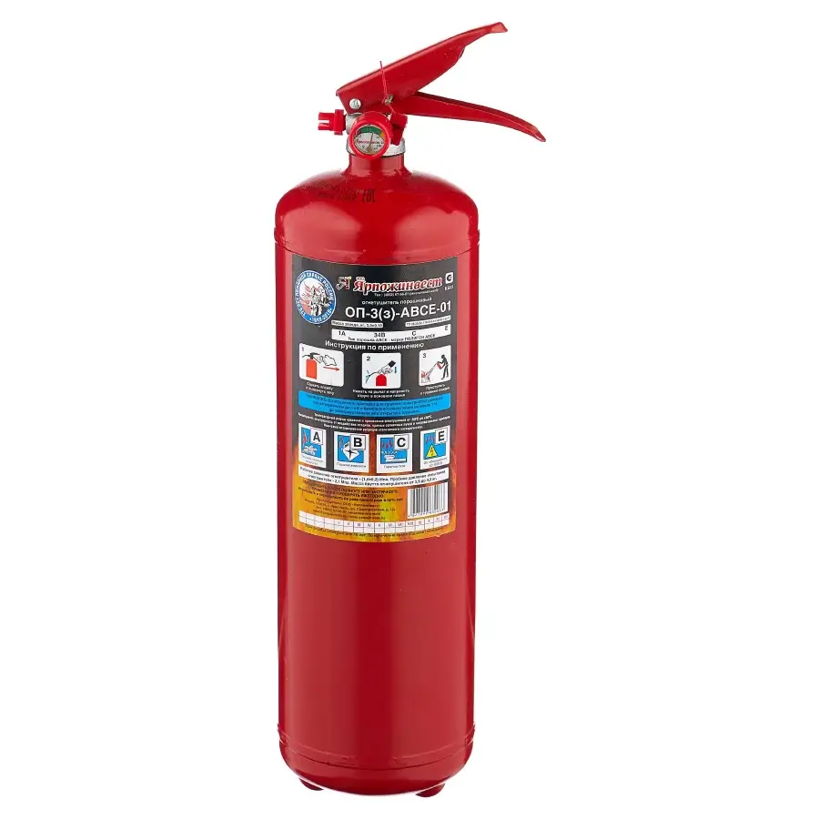 Model: ОП-3 Turi: Poroshokli, zaкачной (bosim ostida) Zaryad og‘irligi: 3 ± 0.15 kg Hajmi: ~3.46 litr Ishlash bosimi: 1.4 ± 0.2 MPa